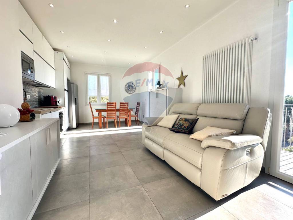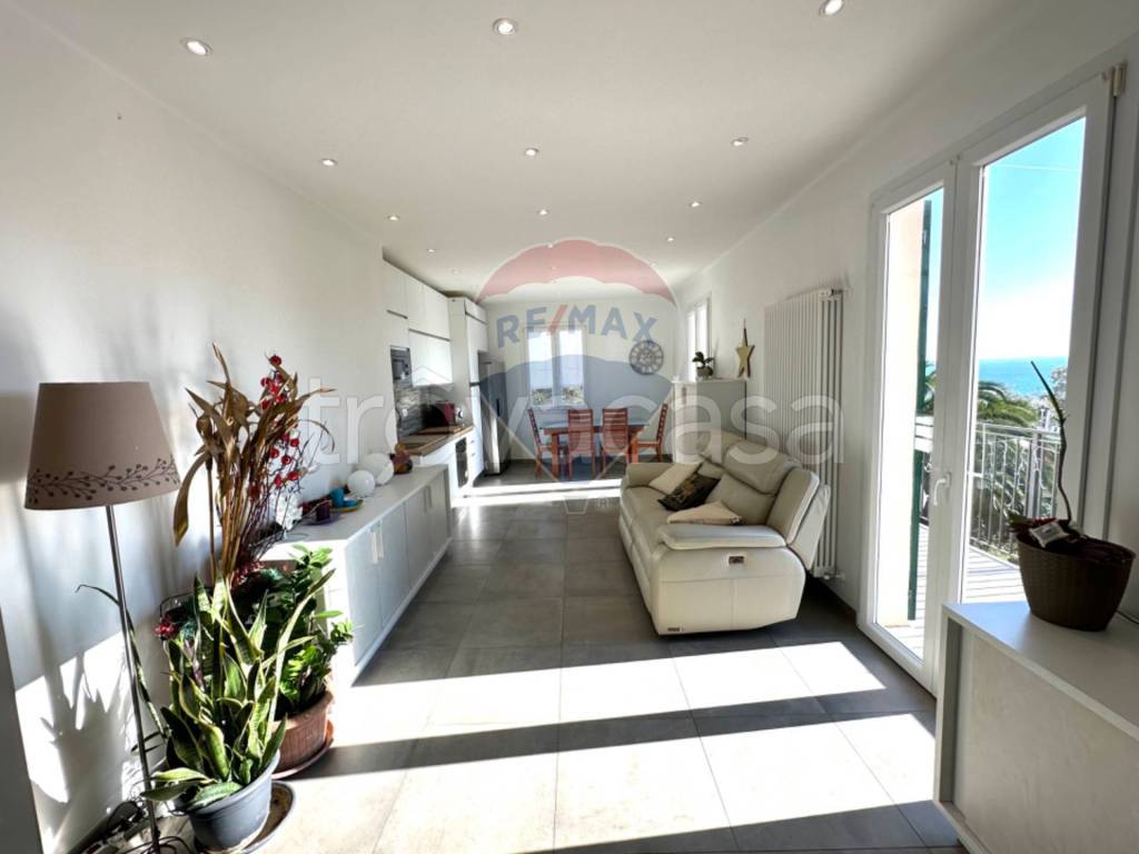 L'appartamento, finemente ristrutturato a nuovo, si trova al primo piano ed è composto da : un ampio soggiorno con cucina a vista e accesso a una balconata davvero spaziosa, perfetta per pranzi all'aperto, relax al sole e per ammirare una vista aperta, godendo della vista più amata da tutti : la vista mare.