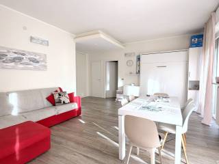 L'appartamento risulta così disposto : ingresso tramite portone blindato su soggiorno con parete cottura, camera matrimoniale con terrazzino soleggiato dal quale si può godere un ottimo scorcio di mare, cameretta, bagno con finestra ed ulteriore balconcino.