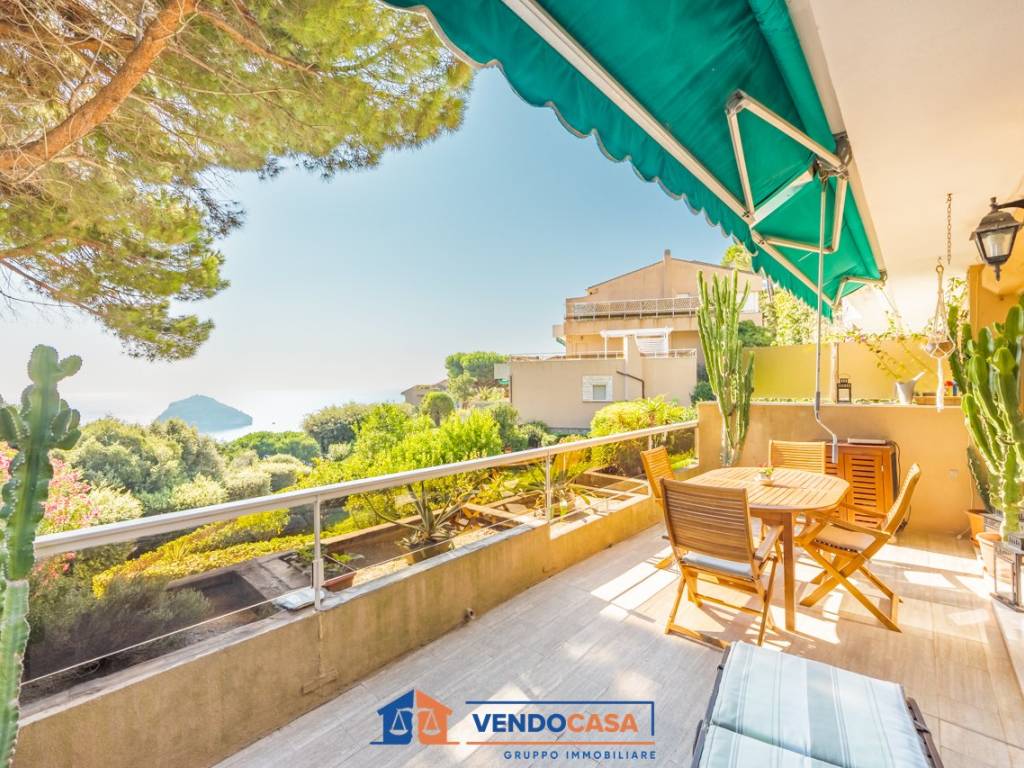 Bergeggi, l'agenzia Vendocasa propone in vendita esclusiva trilocale con terrazzo vista mare, situato nel prestigioso “Borgo Ligure”, un complesso tranquillo e curato, circondato dal verde e dalla pace della Riviera.
