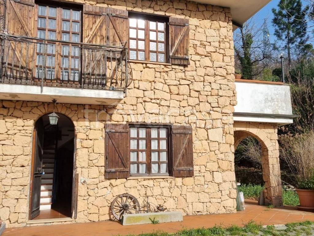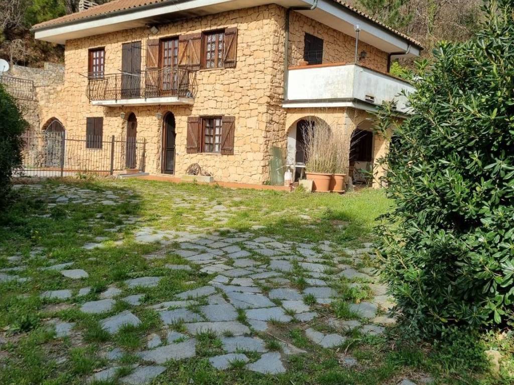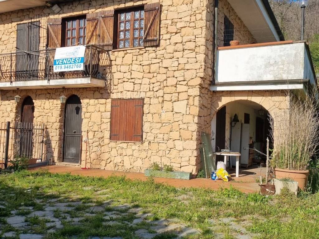 A 5 km (circa) dal primo mare di Spotorno, collocata in una piccola frazione del comune di Vezzi Portio, denominata San Giorgio, in posizione strategica in quanto l'immobile e servito dalla strada che collega sia Finale che Spotorno/Noli Vi proponiamo in esclusiva per Voi, casa semi indipendente, rifinita a pietra vista tipica del Finalese libera ai 3 lati, ( attaccata per una lato alla villa attigua) dotata di ingresso indipendente, con giardino di pertinenza, delimitata da cancello d'ingresso, disposta su tre livelli, con scala interna comunicante tra i piani, e così composta: p.T. : ingresso da porticato in pietra, salone living con camino, disimpegno, cucina abitabile e bagno e giardino privato con corte laterale ;
