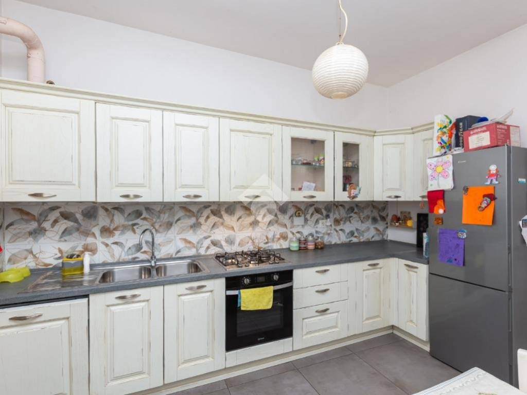 L'alloggio è composto da ampio ingresso, due camere da letto spaziose, bagno con finestra, cucina abitabile con balcone e ripostiglio.