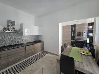 L'appartamento, che gode di doppia esposizione, è composto da ingresso, tinello con cucinino, camera da letto, ripostiglio, due balconi e infine bagno finestrato con vasca.