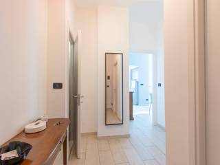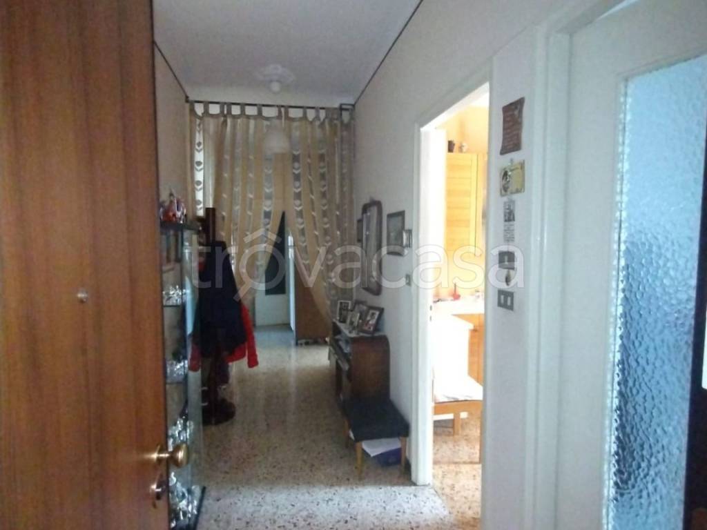L'immobile si trova al piano primo di una palazzina dotata di ascensore ed è composto da ingresso su ampio corridoio, sala da pranzo con cucinotto, camera matrimoniale, altra camera matrimoniale attualmente adibita ad uso salotto, sgabuzzino, bagno con doccia. Grazie alla doppia esposizione l'appartamento è molto luminoso, balcone e ampio terrazzo verandato dalla cucina alla camera da letto.