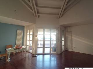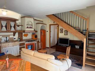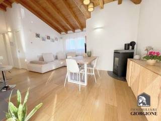 Pavimenti in legno, travi a vista, climatizzatore, impianti autonomi e garage singolo al piano terra.