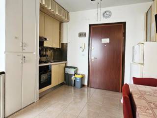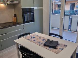 La cucina abitabile si affaccia con il secondo balcone su un tranquillo cortile interno, perfetto per momenti di relax.
