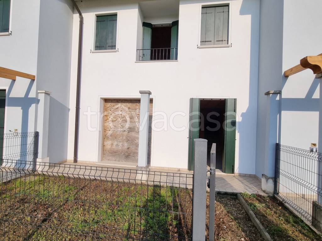 Albettone: a pochi passi dal centro paese, in lottizzazione di nuova costruzione, complesso di tre case a schiera di 140 mq circa, sviluppate su due livelli ognuna con ingresso indipendente sia pedonale che carraio e dotate di verde esterno di pertinenza da mq.50 a mq.200. Ogni abitazione è composta da: ingresso-soggiorno-angolo cottura, 2 bagni finestrati, 3 camere da letto, 1 ripostiglio, 1 garage singolo, giardino esclusivo. Struttura di elevazione in laterizio multistrato con rifodera interna e pannello isolante, solai in laterocemento, manto di copertura in tegole e lattoneria in rame. Oscuri in legno con battuta alla semi-padovana. Marciapiedi, pavimentati con clinker antigelivo. Predisposizione per allacciamento alla fognatura comunale e per l'automazione del cancello carraio. Gli immobili sono attualmente allo stato di grezzo pertanto possono essere personalizzati sia negli spazi interni che nelle finiture. Soluzione ideale per chi cerca tranquillità in quanto il comparto confina: con area verde, area agricola e si trova lungo strada a fondo cieco. Ultima Porzione Centrale disponibile.