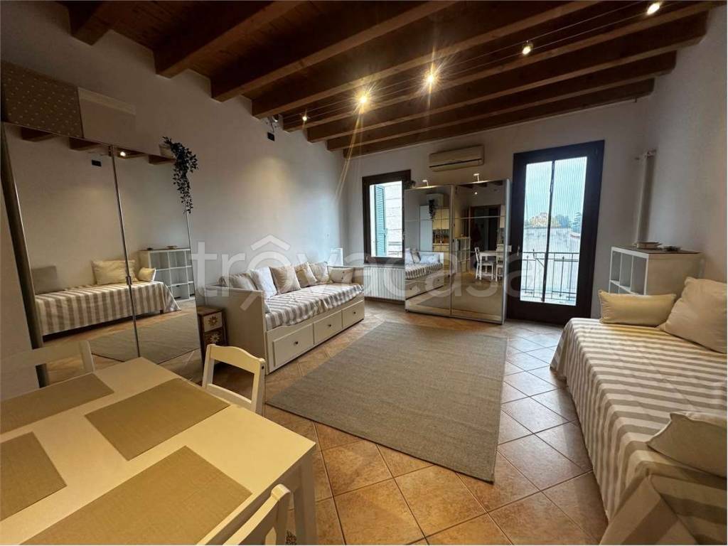 Proponiamo in affitto un elegante monolocale con travi a vista e ascensore con accesso diretto all’interno dell’appartamento.