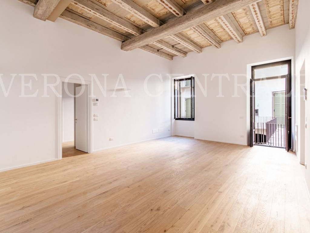 L'appartamento è una soluzione luminosa e completa, perfetta per chi desidera unire il fascino della storia veronese a un prezioso spazio esterno privato.