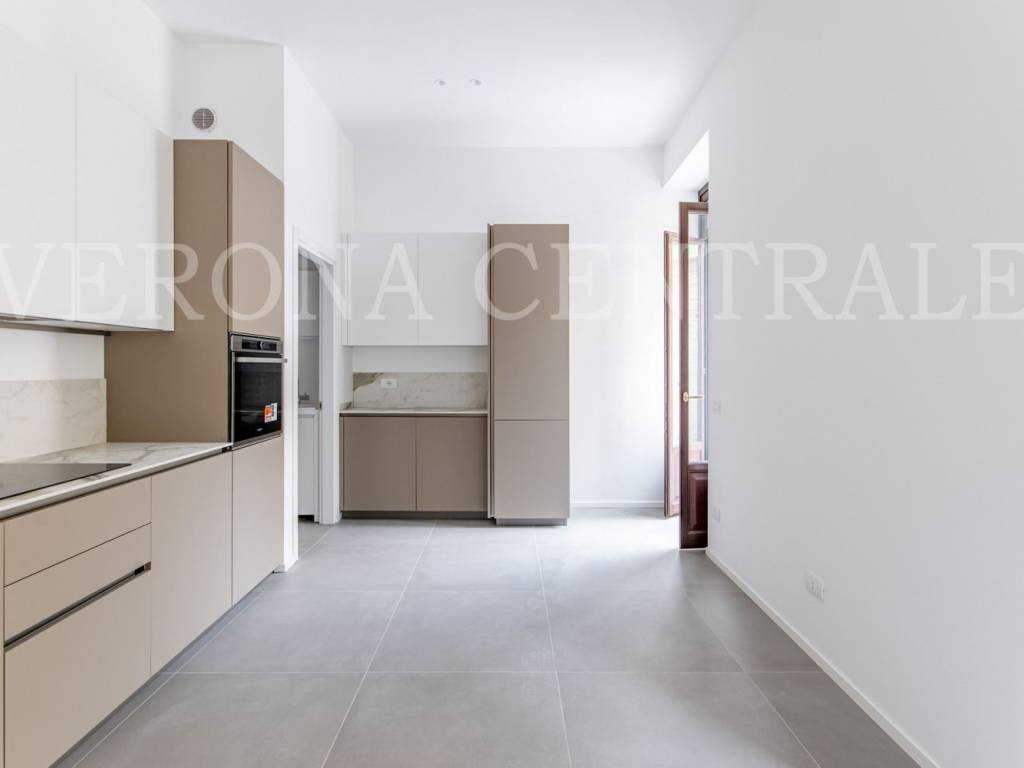 Proponiamo in locazione un esclusivo e ampio quadrilocale di nuova ristrutturazione, situato al Piano Primo di un palazzo storico completamente restaurato in Via Scrimiari, una delle vie più ambite del centro di Verona.