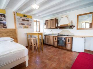 Il monolocale si compone di un ingresso, una stanza con letto a due piazze, un armadio, un divano, una cucina attrezzata, un frigorifero, un angolo tisaneria, una smart tv, una seduta a due posti con schienale ad infrarossi sistema physioterm, un bagno privato in marmo con doccia, lavabo, wc e bidet.