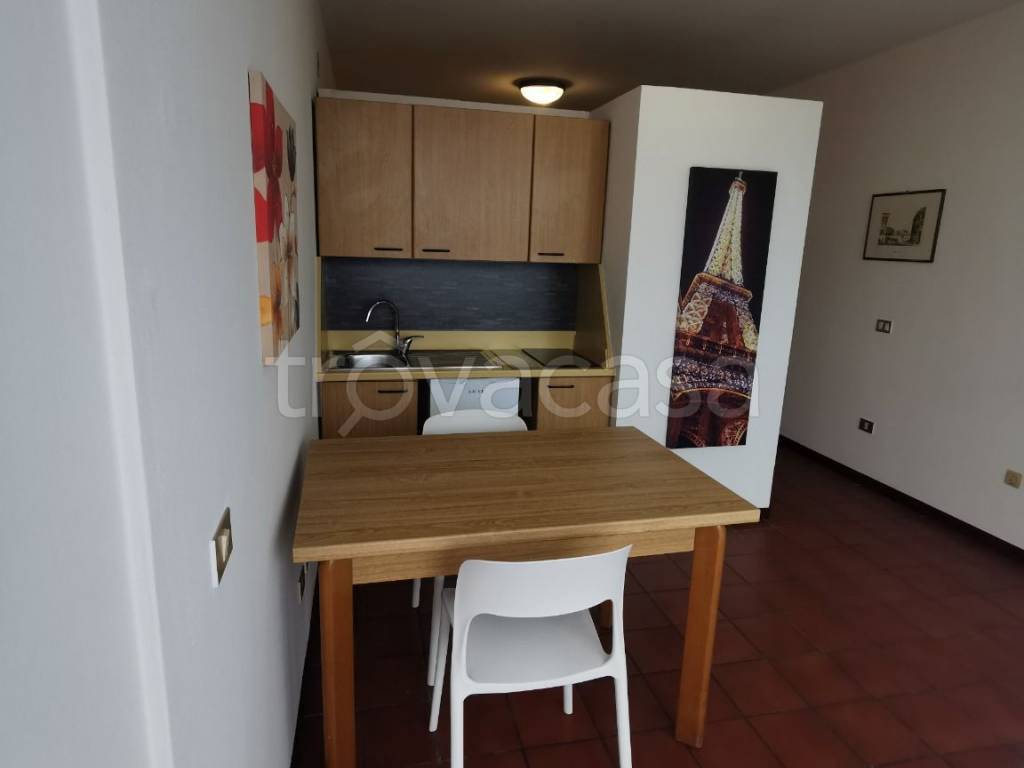 Vicinanze Verona Sud, zona Sacra Famiglia, affittasi luminoso monolocale arredato, comodo a tutti i servizi, al settimo piano con ascensore, composto di zona giorno/angolo cottura, zona notte, servizio con vasca, terrazzo panoramico con tavolo e sedie, ideale per una/due persone, canone mensile 600,00€ + 150,00€ spese condominiali (riscaldamento incluso).Cl. En e.