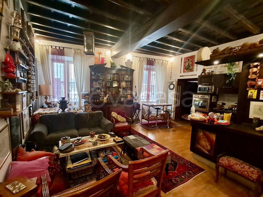 Edificio del '600 terzo ed ultimo piano mq 110 prestigioso totalmente e finemente ristrutturato da noto Architetto soffitti a cassettoni con rosette restaurate a mano ampio ingresso salone doppio camera doppi servizi cucina arredata con mobili di...