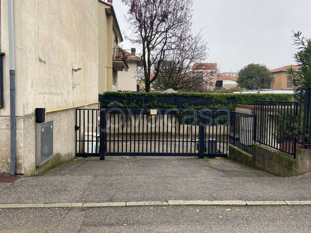 Concorezzo via Monte s. Michele, autorimessa singola in contesto condominiale con accesso dalla via pubblica a mezzo rampa condominiale munita di cancello automatico e cancellino pedonale con chiave.