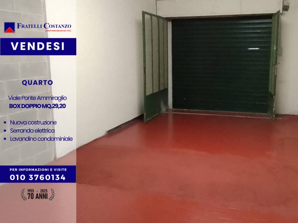 Albaro Lido Corso Italia interessantissimo box 14 mq. Per auto di grossa cilindrata (Suv/Range Rover) e moto, porta di accesso basculante manuale, ampio spazio di manovra comodissimo, complesso accessibile da cancello e sbarra elettrica telecomand...