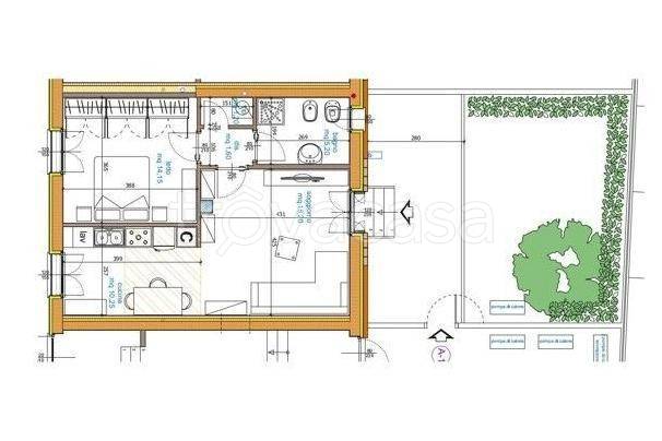 Bilocale di 65 mq di nuova costruzione in classe A3 con annesso giardino privato di 60 mq e un posto auto privato incluso.
