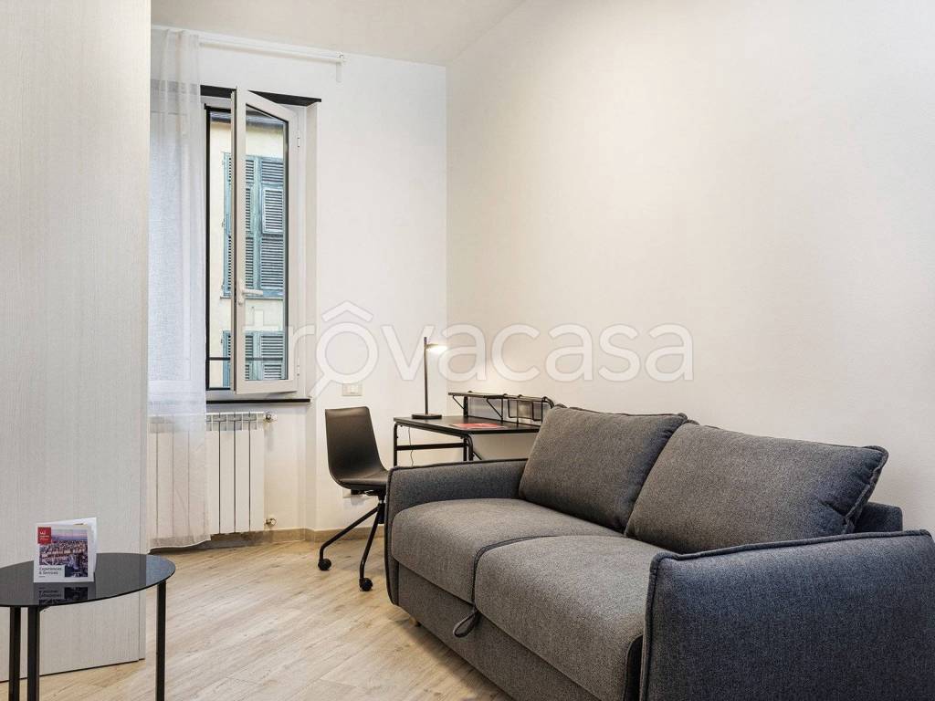 Composto da soggiorno con cucina a vista, camera e bagno con ampio box doccia