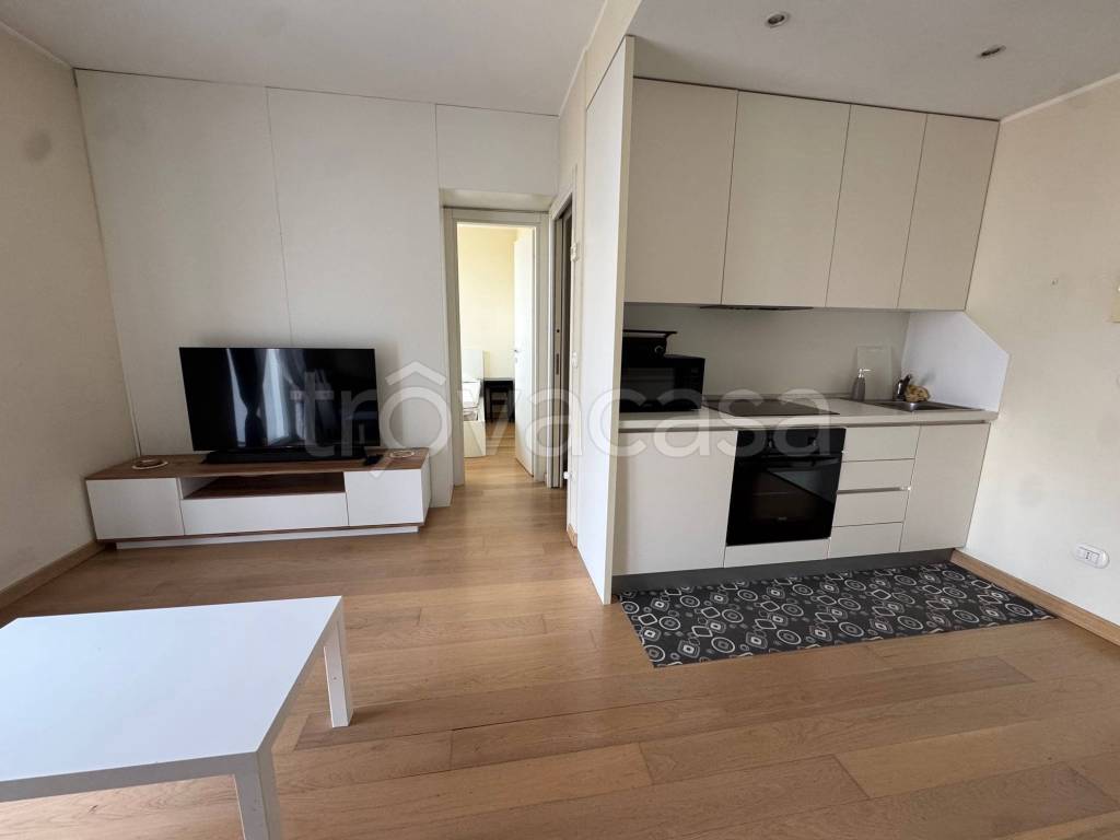 Via Padre Murialdo 3, in elegante stabile di recente costruzione, in ottima posizione a pochi minuti dalla Tangenziale Ovest, a ... con cucina a vista (completamente attrezzata), balcone con vista panoramica, camera matrimoniale, bagno e cantina ...
