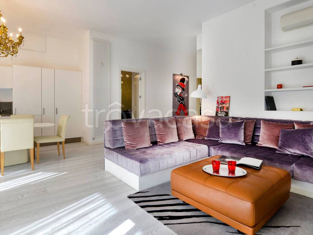 In un curato stabile signorile dotato di ascensore e portineria, all'angolo con via francesco sforza, in una delle posizioni più ricercate della città grazie alla comodità dei mezzi e dei servizi,