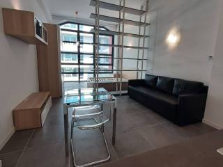 Elegante, luminoso e spazioso monolocale ristrutturato e arredato, in stabile signorile, sito al primo piano con ascensore, aria condizionata, balcone. La pianta, è caratterizzata da ingresso, ampio soggiorno con cucina a vista, divano letto, serv...