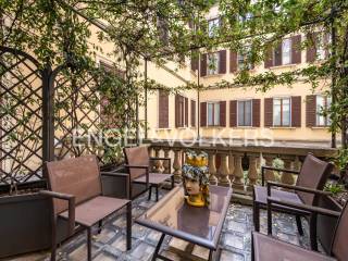 All’interno di un elegante stabile nel Quadrilatero della moda, ampio bilocale ristrutturato con esclusivo terrazzo al piano. L’abitazione si compone di soggiorno doppio, zona pranzo, cucina abitabile, bagno con doccia, camera e bellissimo terrazz...