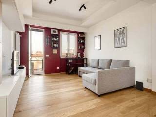 Proponiamo in affitto un attico davvero raro da trovare: 111 mq al quinto e ultimo piano di un elegante edificio di nuova costruzione, impreziosito da un terrazzo pan...