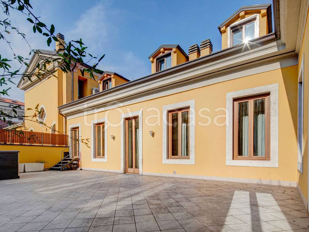 Appartamento con grande terrazza in prestigioso palazzo d’epoca soggetto di un globale restauro nei primi anni 2000. L’immobile di 160 mq caratterizzato da una planimetria contemporanea si compone da: ingresso, salone doppio con camino e accesso a...