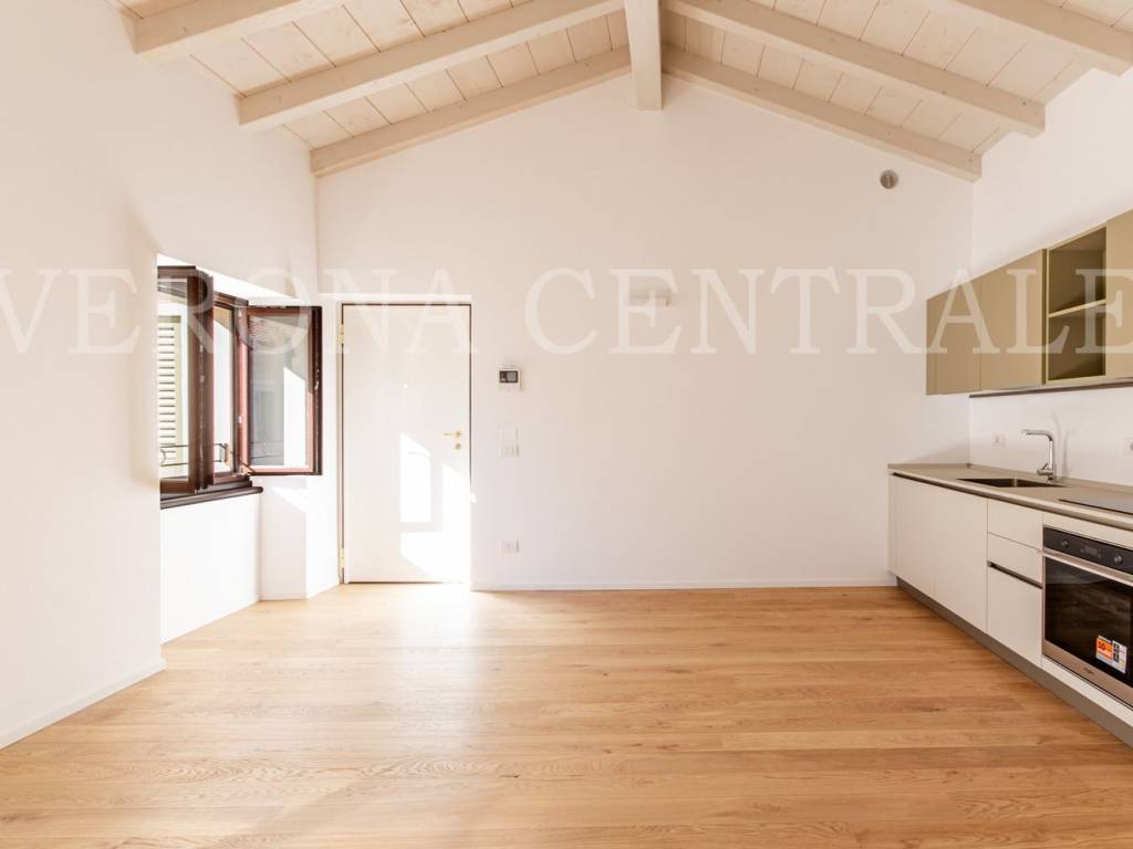 Nel cuore del centro storico di Verona, in Via Scrimiari, proponiamo in locazione un affascinante bilocale mansardato, situato al ... moderno e curato nei dettagli, presenta sanitari sospesi, box doccia e un elegante mobile lavabo.