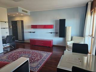 L'appartamento è composto da un soggiorno con cucina a vista, due camere, due bagni e due balconi.