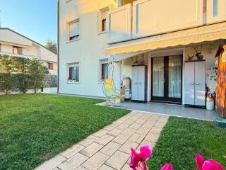 Porzione di casa situata ad Abano Terme (pd) in via g. Cardano. Piano terra: ingresso, vano scala, ripostiglio, centrale termica e w.C., locali accessori funzionali. Primo piano: ingresso, disimpegno, pranzo-soggiorno, cucina, bag...