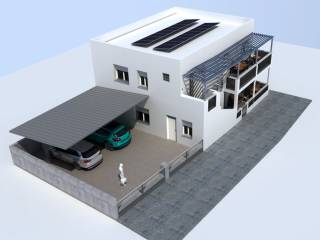 La villa si sviluppa su un lotto di 500 mq circa e si articola su due livelli di generose dimensioni contenuti in 75 mq ciascuno circa.