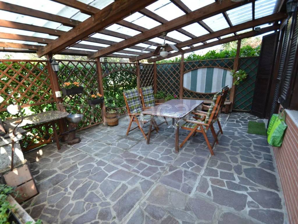Villa singola disposta su unico piano abitativo con annessi piano interrato e piano sottotetto per un totale di mq 211 circa e così composta: portico di ingresso, soggiorno con termo-camino, cucina abitabile con uscita sul portico laterale, tinell...