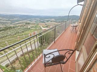 Casole d'Elsa, zona Cavallano, posizione panoramica. Vendesi appartamento posto al piano primo di piccola palazzina. L'immobile si compone di: ingresso/disimpegno, soggiorno, cucinotto con tinello, 2 camere matrimoniali, servizio finestrato e terr...