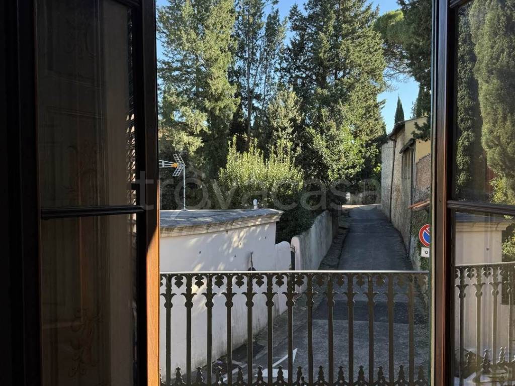 Nelle immediate vicinanze del Galluzzo, in antico complesso ubicato su un colle, proponiamo in vendita elegante proprietà di 272 mq, con giardino, bellissima corte, loggia e zona parcheggio.