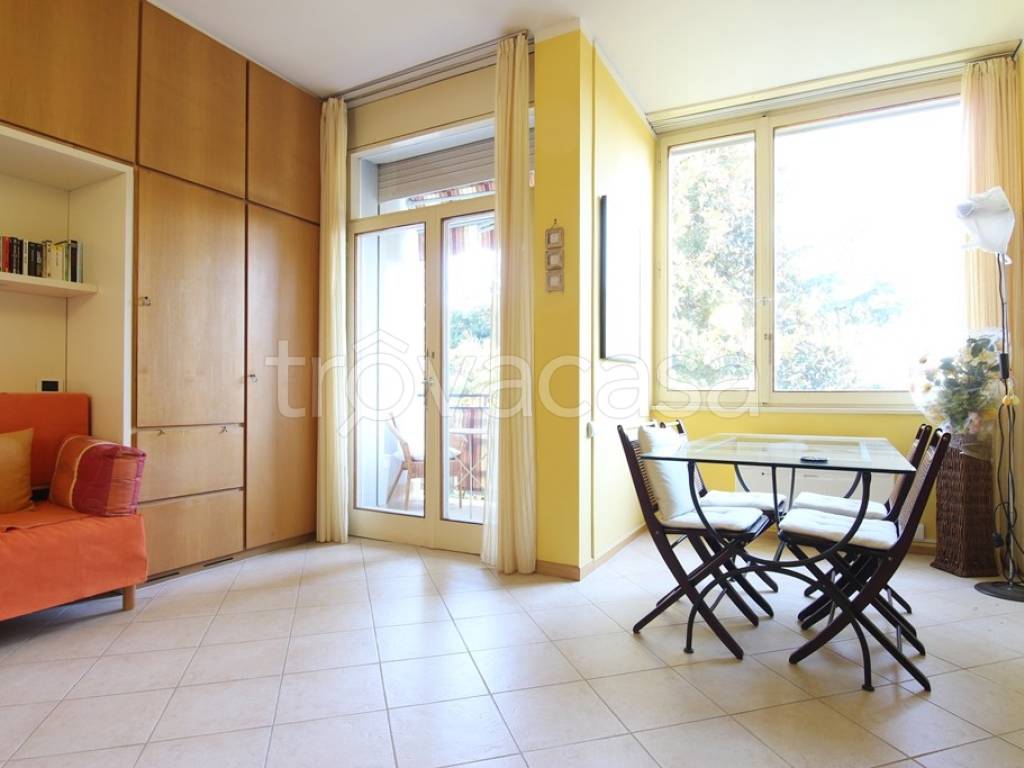 Monolocale così composto: ingresso con cucinotto, zona giorno con divano letto e bagno.