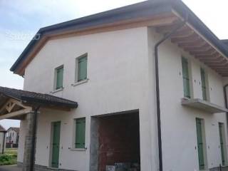 Vendesi porzione di bifamiliare al grezzo sita a Grantorto, in quartiere signorile. Disposta su due piani, composta da cucina e salotto, disimpegno/lavanderia, bagno, garage; al piano superiore, tre camere, due servizi, soffitta non abitabile, gia...