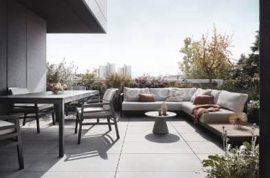 Il soggiorno, dotato di una cucina a vista, si apre su un comodo balcone, ideale per goderti ...