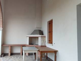 L'abitazione è composta da piano terra con ingresso, soggiorno, cucina, bagno, ripostiglio, loggia portico, piano primo con tre cam...