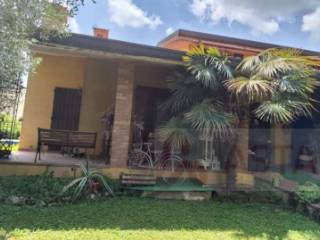 Edificio indipendente su tre livelli, composto da abitazione, garage, laboratorio e giardino. Abitazione composta da piano terra con ingresso, soggiorno, cucina, bagno, ripostiglio, loggia portico, piano primo con tre camere e bagno, mansarda; tav...