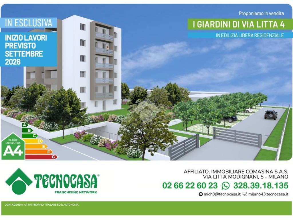 In contesto di nuova realizzazione denominato 'I giardini di via litta 4', proponiamo in esclusiva 12 unità abitative in edilizia libera residenziale con classe energetica A4.
