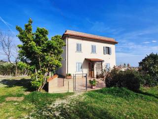 In una splendida cornice rurale, dove filari di vite ed antichi ulivi segnano il paesaggio proponiamo in vendita un bel casolare marchigiano di circa 260 m² su due piani, con vista sia verso il mare che verso i Monti Sibillini, completamente da re...