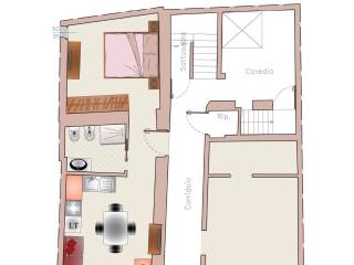L'appartamento è arredato , con una disposizione che sfrutta al massimo lo spazio, rendendo l'ambiente accogliente e funzionale.