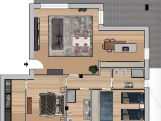 Appartamento trilocale di 86,39 mq, posto al terzo piano con ascensore, cosi composto: ingresso su disimpegno, soggiorno con angolo cottura, due camere, due balconi, un bagno.