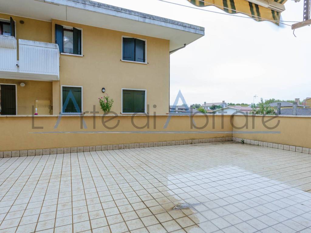 L’abitazione si compone di ingresso, soggiorno, pranzo, cucina, due camere da letto, due bagni finestrati, poggiolo e garage. Di particolare interesse lo scoperto...