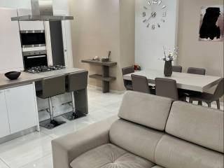 L’appartamento è composto da una cucina/sala pranzo, un disimpegno, n.2 camere da letto e due locali wc; presenta, altresì, un balcone ed un terrazzo a livello, per un totale di circa 86,00 mq di superficie cal...