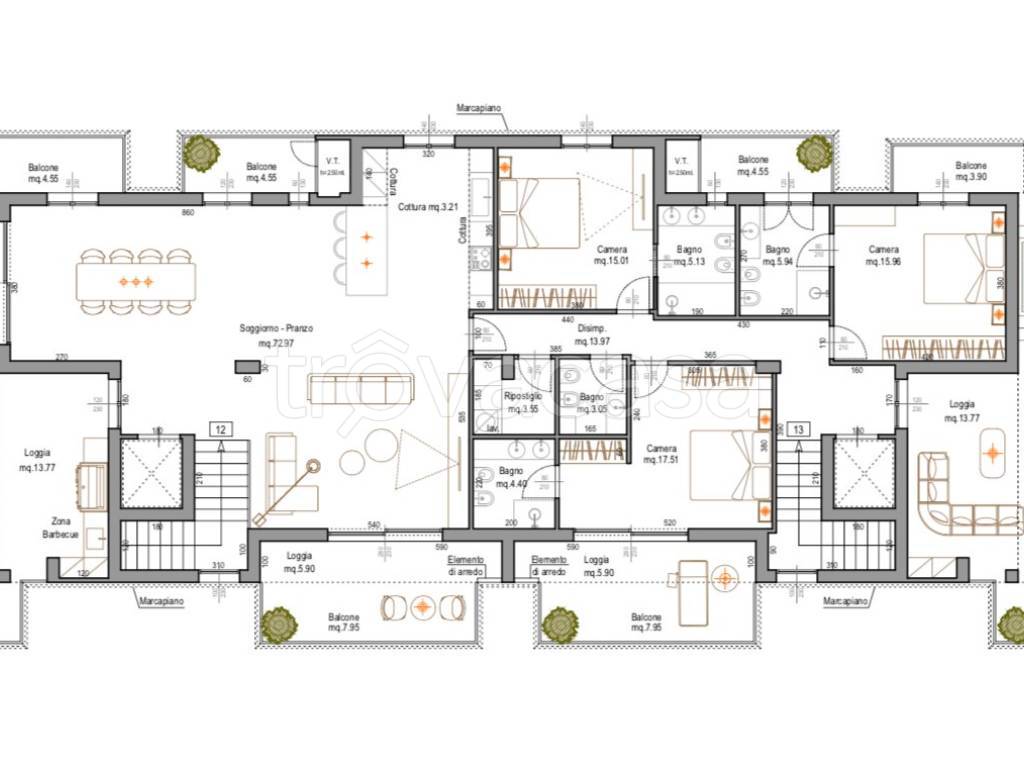 Riccione - In zona residenziale e verdeggiante, a ridosso del Paese, a pochi passi da tutti i servizi, vendesi in nuova palazzina ... mq, composto da ingresso su sala soggiorno con angolo cottura e terrazzo vivibile di circa 10,00 mq, disimpegno notte, due comodi ...