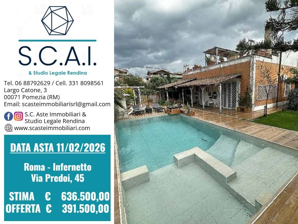 Villa ... catastali, con annessa corte esclusiva, piscina e garage esterno (28 mq) in legno e ... dell’Infernetto, ben servita da scuole, supermercati e trasporti pubblici; inoltre ...
