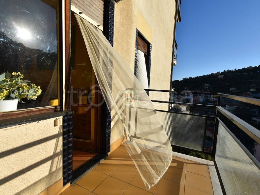 Trilocale di 83 m/2 con grandi terrazzi, parcheggio condominiale e bella vista mare in zona Villa Helios a Sanremo.