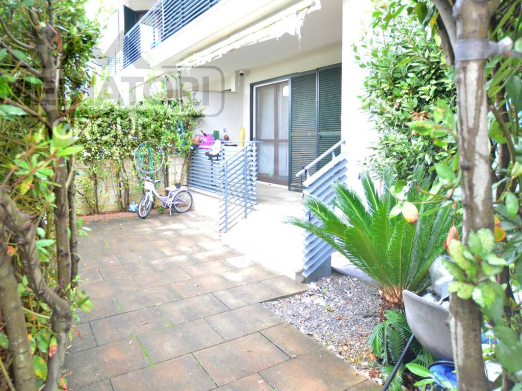 In zona residenziale, appartamento al piano terra con resede, giardino e posto auto.