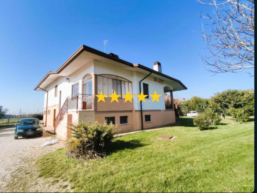 Villetta singola di dieci locali della superficie di 471,95 mq e terreno agricolo della superficie di 3.330 metri quadri con garage di 24 metri quadri.