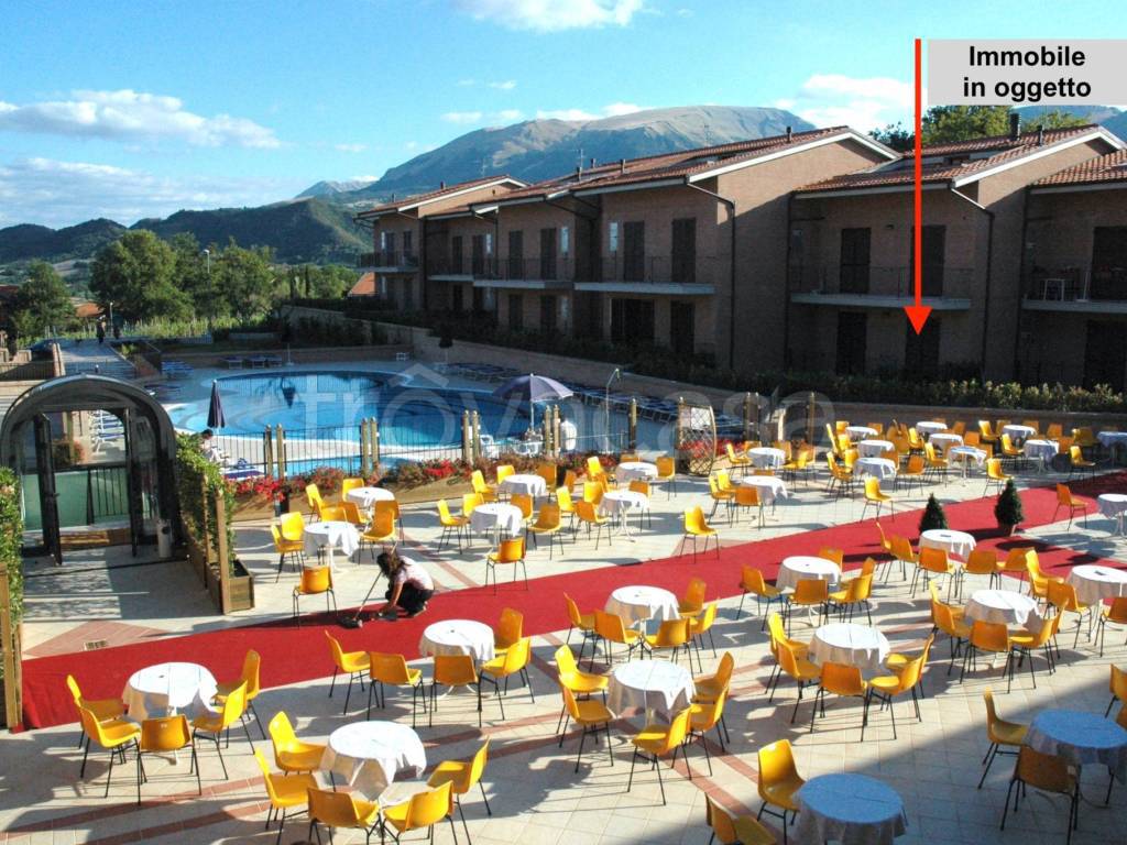 A Sarnano, esattamente nel Complesso Residenziale di recente costruzione prospiciente il Centro Termale di San Giacomo, si ... con vista panoramica di 15 mq. Completa la proprietà un garage al piano interrato di circa 40 mq.
